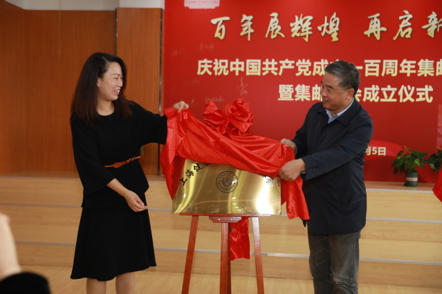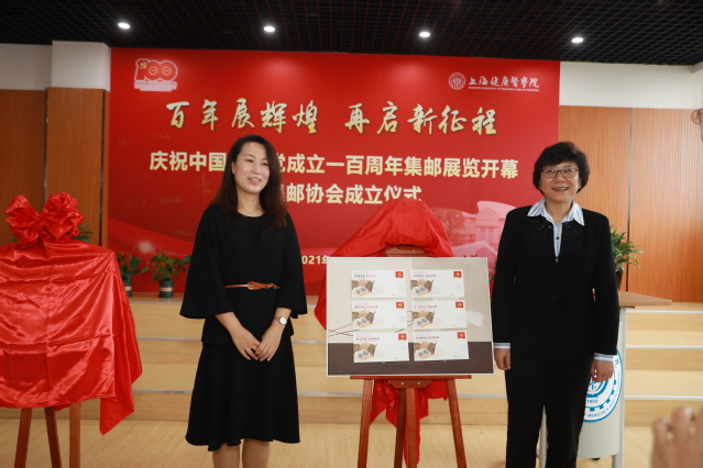 校工会常务副主席凌文惠宣读首届集邮协会组织机构,党委副书记于莹为协会会长、副会长、顾问、秘书长颁发聘书;集邮协会会长李兆伟发表感言;陶文捷、于莹和张玉茹共同为集邮协会成立揭牌。最后,于莹宣布“百年展辉煌 再启新征程”邮展开幕。