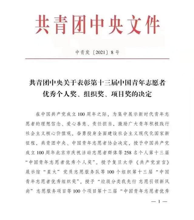 历经数月准备,和一个多月的上海地区初选审核、终评答辩会等环节,校青协从我市各级各类参与申报的青年志愿者组织中脱颖而出,作为上海市优秀青年志愿者组织推报全国名单代表进入团中央终评,最终获得第十三届中国青年志愿者优秀组织奖。