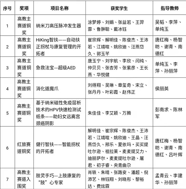 第七届中国国际“互联网+”大学生创新创业大赛全国总决赛上健医获奖名单