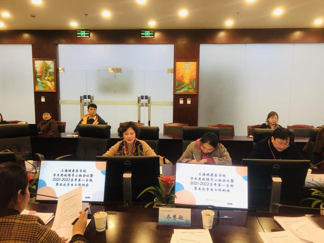 与会人员对学校2021年学生思政工作开展情况表示肯定,同时就如何进一步做好2022年学生思政工作开展务虚研讨。宣传部部长李兆伟表示:学生思政工作要始终围绕一条主线,即坚持以习近平新时代中国特色社会主义思想为核心,以政治认同、家国情怀、道德修养、法治意识、文化素养为重点铸魂育人。学生思政工作可以从校院两个层面共同发力,形成特色的育人品牌,同时要充分发挥思政课堂、学生园区、校外基地三大阵地的育人功能;马克思主义学院院长孙玉良提出:学生思政工作要进一步在示范性效应上下功夫,增强我校学生思政工作的社会效应及辐射面,同时进一步促进思政课教师与辅导员队伍的融合发展;教务处处长王莉指出:希望能够拓展合作领域,积极打造社会实践金课,同时注重学生个人综合素养的养成,积极探索大学生诚信教育积分管理新模式。党校办副主任于杨表示:聚焦学生思政工作示范性引领,进一步发挥好人民健康课品牌效应,同时可以思政工作为抓手,将学校全面从严治党工作推向深入,形成工作亮点。