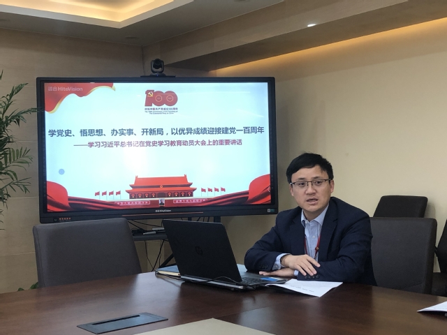 本次学习由党总支副书记贺民领学。他围绕2021年党史学习教育动员大会基本情况、开展党史学习教育的重大意义、部署党史学习教育的重点内容、对党史学习教育提出工作要求四个方面进行导读,深刻完整的传达了习近平总书记在党史学习教育动员大会上的重要讲话精神。