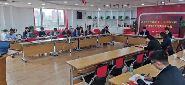 5月20日下午,党务工会联合直属党支部开展中国共产党新民主主义革命时期历史集中学习交流。组织委员陈国庆同志做导学,郑学文、郭戎静等7位党员交流学习体会,23位党员、群众参与学习。