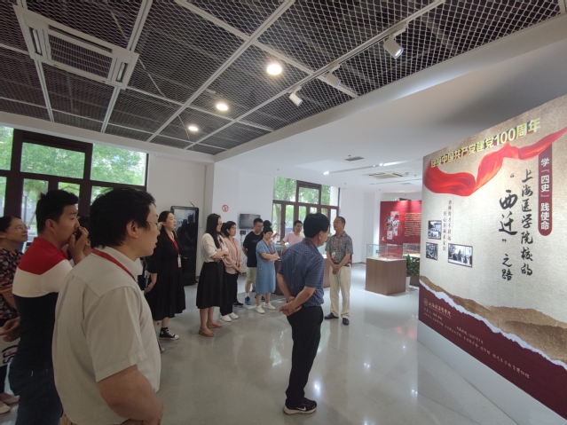 为庆祝中国共产党成立100周年,加强史学习教育教师思想政治教育6月3日下午文理教学部直属党支部组织全体党员和教师参观南苑图书馆底楼上海医学院校“西迁之路”主题展。