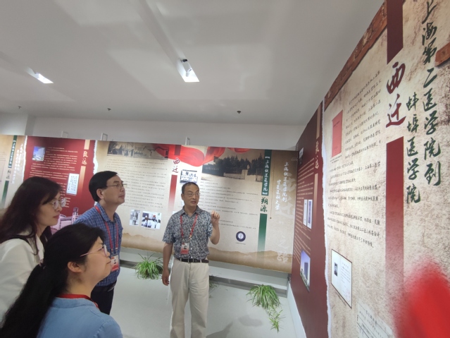 本次参观由教学部主任耿铭亲自担任讲解,激情洋溢介绍了展出的医学院校的西迁历程。以图文和实物相结合的方式,重温了那段波澜壮阔的“西迁”历史,生动展现了“西迁”人的家国情怀与建设国家的使命担当。