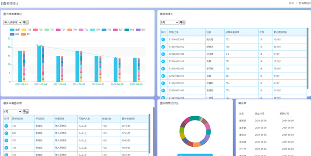 图书馆学术研讨室:图书馆开放21间学术研讨室共读者使用,包括8间南苑多人学术研讨室,13间新南苑单人研修间。该预约模块中,只要符合条件系统将自动审核通过,这将大大缩短读者的申请确认时间,实现快速预约的功能;该平台具有信息推送功能,读者在预约多人学术研讨室时,预约系统会推送消息给随行人,保障读者权益,以免冒用信息;分设PC端和微信端两个预约途径,以便读者预约;具有后台统计功能。