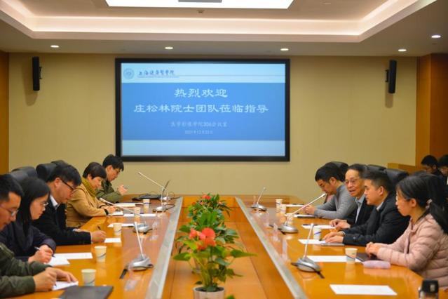 2021年12月23日下午,上海理工大学庄松林院士团队应邀来到我校进行学术交流。上海理工大学光电学院院长庄松林院士、常务副院长张大伟教授、宋波教授、常敏教授、谢新妹主任一行与会。我校吴韬校长、科技处、医学影像学院、医疗器械学院、上海市5G+智慧医疗创新实验室师生50余人参与交流。