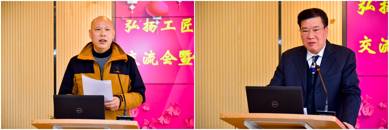 上海高桥石化首席技师、“上海工匠”张华作了主题为“展示匠艺,传承匠心”的交流发言;上海幼狮汽车销售服务有限公总经理、“大国工匠”陶巍进行交流发言。2位工匠以真实案例,展示了匠心、匠德,分享了基地创建感悟及校企合作人才培养的成效。我校学生代表刘千红做了“传承工匠精神,择一事终一生”主题交流,表达了大学生对劳模工匠的敬仰和“干一行爱一行”的决心。