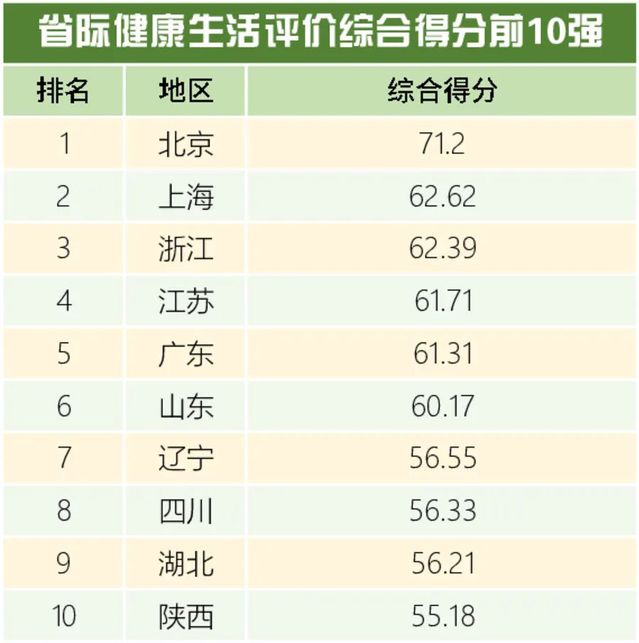 北京、上海、浙江、江苏、广东、山东、辽宁、四川、湖北、陕西位居全国31省(市、自治区)综合评价前10名