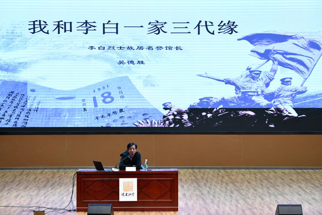 为深入贯彻习近平新时代中国特色社会主义思想,切实推进党史学习教育,学史明理、学史增信、学史崇德、学史力行,4月15日下午,上海健康医学院学生党史学习教育“电波不逝·信念永存——纪念李白烈士诞辰110周年”专题讲座在新南苑800人报告厅举行。李白烈士故居纪念馆第三任名誉馆长吴德胜,应邀为我校学生作《我和李白一家三代缘》专题讲座。吴馆长表示,本次讲座是他累计开展的第100场关于李白烈士的讲话,意义非凡。 各学院学生代表、学工党支部教师党员共350人聆听了本次讲座。