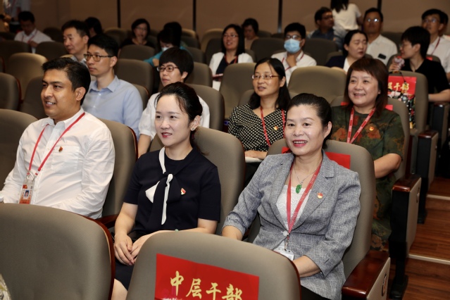 上海健康医学院党委理论学习中心组成员、全体中层干部、劳模代表、民主党派代表、全体辅导员和学生代表一起,满怀激动喜悦的心情,在北苑1号楼200人报告厅集体收看庆祝大会实况转播。同时,各二级党组织充分利用本单位现有条件,组织本单位干部职工和党员学生收看收听,离退休老同志在家收看收听,热烈庆祝中国共产党百年华诞。
