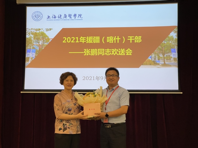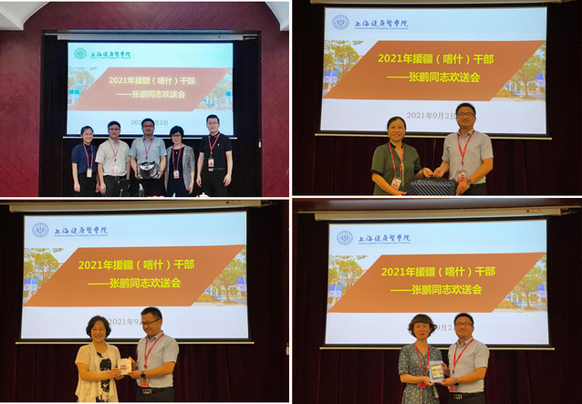 上午10:00,学校在北苑1号楼108会议室举办了欢送会,欢送会由临床医学院党总支书记、院长蔡巧玲主持。会上,组织部部长郭戎静介绍了张鹏同志援疆(喀什)工作相关情况,高度赞扬张鹏同志勇于担当作为,是学校的光荣,展现了上海干部的良好形象。与会各职能部门负责人、临床医学院教师代表都表达了对张鹏同志的崇高敬意和殷殷嘱托,希望他传承优良传统,勇于直面挑战,保持紧密联系,尽快适应新岗位,在前方继续传播健康声音,讲好健康故事,并表示上海是后方,学校是后盾,大家齐心协力,确保援疆支教任务顺利完成。会上,各职能部门、临床医学院送上了精心准备的防疫包、慰问品等。