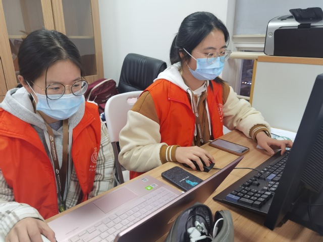 培训后,同学们立即全身心投入各自的岗位工作。志愿者们被分为两组:电话流行病调查组和密接防控组。电话流调组的志愿者们目不转睛地看着电脑上的名单,拨号、接通、问询、登记,大家已经熟练掌握了全套流程。“您好,请问你是xxx先生/女士吗?”“您是否去过xxx?”“希望您配合我们进行流调”。“首先要确认居民的身份,再询问其现居住地在哪,有无去过中高风险地区……,电话排查,说起来简单,但做起来并不容易。作为咨询者,我们不仅要冷静、礼貌地阐述来意和目的,还要仔细地回答群众问题,树立起信任感。”入党积极分子施轶珺表示,参与疫情防控,作为公卫学子义不容辞。