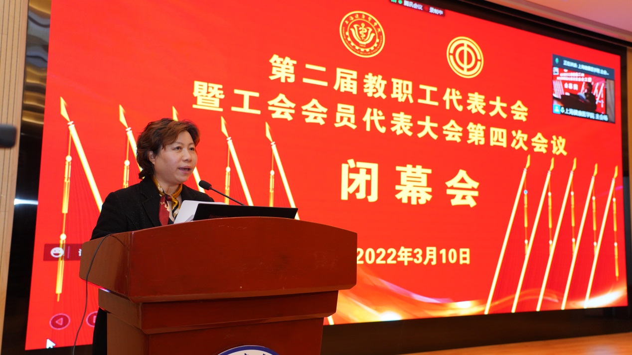 大会在民主、团结、奋进的氛围中完成了各项任务。本次大会统一了思想,明确了任务,坚定了信心。大会号召全体教职工在学校党委坚强领导下,团结一致、砥砺奋进。聚焦第一次党代会各项目标任务的落实、教育部本科教学工作合格评估的高质量通过、教育评价改革深化和地方性高水平大学建设等年度主要任务,在更高起点上谋划发展,在更深层次上推进改革,以更高的站位、更广的视野、更实的举措,踔厉奋发,笃行不怠,高质量落实各项工作任务,以优异的成绩迎接党的二十大和上海市第十二次党代会胜利召开!