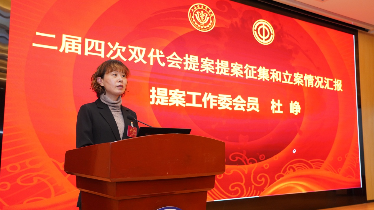 各代表团分组讨论情况由线上文件预览形式供代表们审阅,杜峥做二届四次双代会提案征集和立案情况汇报。凌文惠宣读二届四次双代会大会决议。