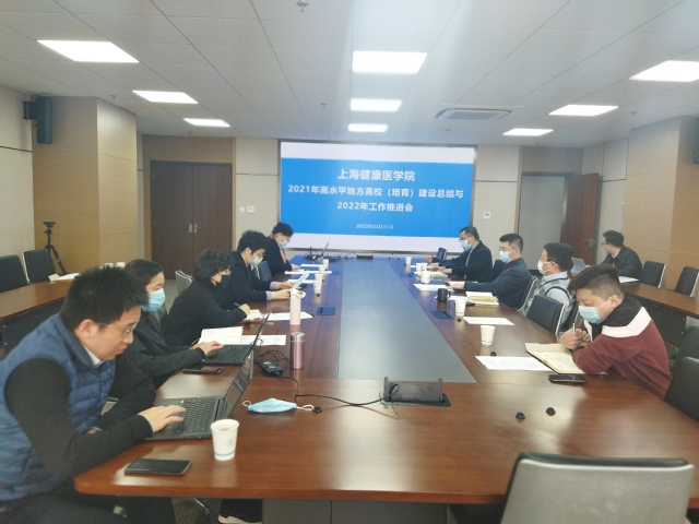 吴韬总结讲话。他指出:2021年是“十四五”规划开局之年,全校上下凝心聚力、接续奋斗、攻坚克难,我校首次获批上海市高水平地方高校(培育)建设单位,这是学校获得的重大发展机遇和发展契机。在学校党政班子、子方案责任部门、相关职能处室、二级学院(部、中心)及老师们的共同努力下,顺利完成了2021年高水平地方高校(培育)建设项目。他强调,2022年项目推进工作要对照申报方案,加强过程管理,要重点思考如何聚焦关键点,攻坚克难,建设出“高水平”的成果。最后吴韬提出四点要求:一是顶层设计高格局。以一流医学院建设为使命,坚定攻坚克难的决心与信心。加快研究高水平地方高校建设的普遍规律,实时跟踪和分析相关学科发展动态,用好高水平地方高校(培育)建设的政策优势和资源优势,调整和优化专业结构和布局,增强协同创新能力,提高人才培养质量,为国家建设和区域发展提供更加有力的人才和智力支撑。二是内涵发展高水平。以健康新工科、智慧新医科为引领,重点建设应用型、特色性专业学科群,同时推进各二级学院交流交往交融,促进各学科交叉协同,充分发挥我校多学科特点,加强与其他高校学科的同城协同、同网络协同,构建学科新的增长点,实施错位发展战略,克服同质化倾向,彰显异质性特征,构筑具有“上海风格”的学科专业群。三是过程管理高标准。加强高水平地方高校(培育)建设的组织保障,统筹推进各项工作的开展,高标准提升完成学校治理结构、人事制度、科研评价、教育教学评价、资源统筹配置等重要制度,为地高大项目过程管理营造有利于项目建设的良好氛围,确保高水平内涵建设取得实效。四是验收指标高质量。坚持以一流为目标,以高质量、特色性为根本遵循,以高水平地方高校建设(培育)项目的牵引产出一流成果。建设若干国内外有影响的重点学科和专业群;建成若干个高水平科研创新平台,形成一批重大教学和科研成果;建成一批有重大影响的高水平教师团队和以高水平领军人才为核心的创新团队。