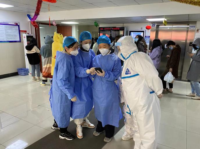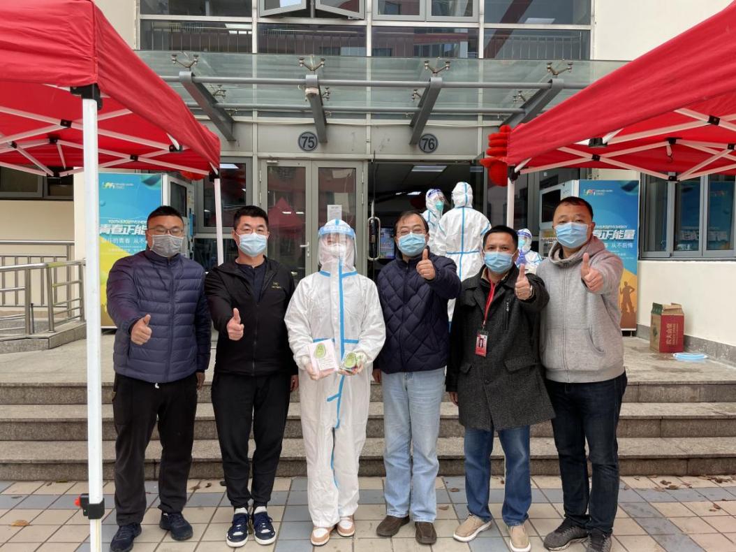 护理与健康管理学院胡雪东老师也在抗疫一线的队伍中,与所有的师生共进退,在此次临时管控中,统筹管理北苑12号楼的事务安排,她忙里偷闲接受采访时说道:“作为上海健康医学院一名辅导员,坚守一线是我的职责所在,每一位老师都在各自的岗位中默默付出着。其实这次能够有机会和孩子们真正意义上的同吃同住同生活,对于我来说是非常宝贵的。我们从3月17日凌晨到现在,每天一大早校领导和院长们就站在楼前为我们所有人保驾护航,最近上海的天气大风夹杂着小雨,核酸检测的医护人员存放医用垃圾的塑料袋都要绑着几层胶带固定,但所有人都义务坚守在岗位上,领导们一站就是一上午,陪伴着我们。作为楼内保护孩子们的我们,基本上每天早上都是5:00起床,准备分发早餐和核酸检测工作,全天都没时间能坐下休息一会儿,但每一句:‘谢谢老师、老师辛苦了',我真心感觉没有什么是战胜不了的。”