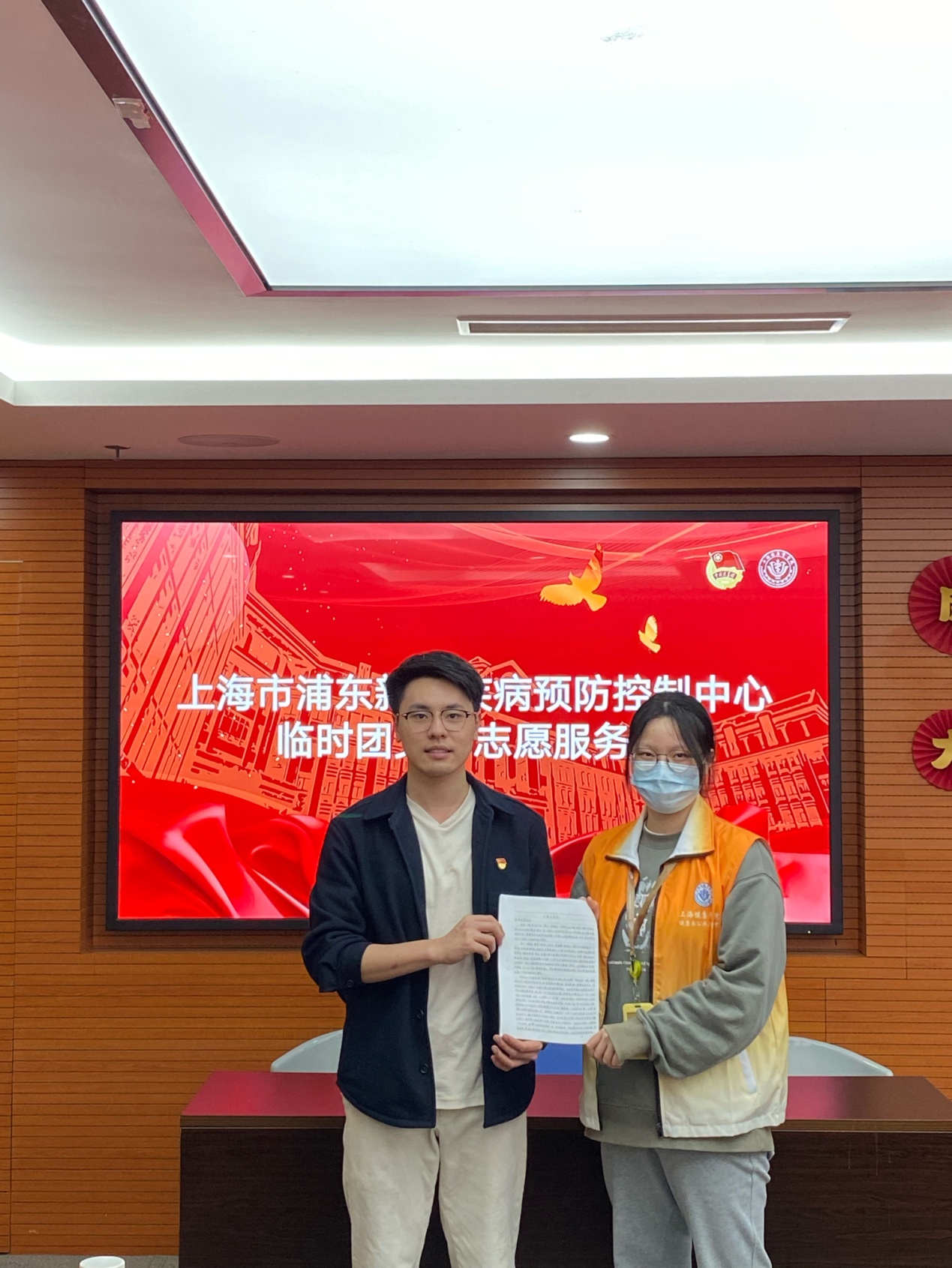 随后,会上宣读了《关于成立上海健康医学院浦东疾控预防控制中心临时团支部的决定》,选举产生了临时团支部委员会名单,赵乐宏任临时团支部书记,施轶珺、赵伟航任临时团支部副书记。“疫情面前,每个人都要做防控卫士,作为青年志愿者,我们的责任重大、使命艰巨,需要我们勇敢地站出来,投身抗击疫情各项工作,不畏惧、不退缩、不计较个人得失,冲锋在前,全力以赴,助力打赢这场阻击战。”临时团支部团代表赵伟航说。