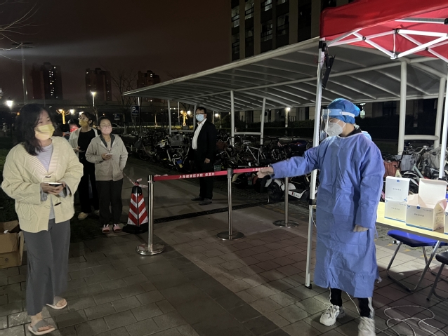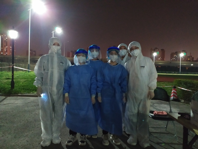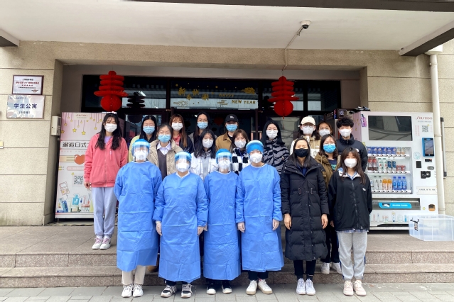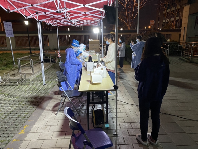 在封闭管理期间,3月15日、16日连续两天晚上,学校对南苑9号楼全体人员进行单人单管鼻拭子核酸检测,文娟老师组织宿管、学生志愿者团队开展工作,协助医务人员,确保每一位学生都参与核酸检测。在此过程中,楼长王舒心同学积极协调、组织层长参与核酸检测工作,协助组织各楼层同学有序下楼参加检测,担任起联络员的角色。夏琳同学、娄怡妃同学、张佳丽同学三位层长则主动报名,有效充实检测现场的工作力量,她们穿上防护服、戴上防护面罩,维持现场秩序,引导同学扫描二维码,使得检测工作有条不紊,现场秩序井然,核酸采样工作顺利完成。