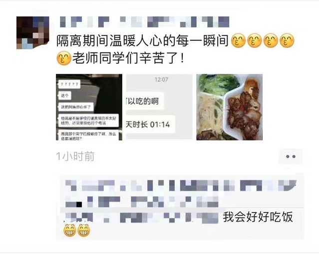南苑9号楼的封闭管理业已结束,学校带给同学们的温暖将会继续,这种温暖会持续在同学们心中,激励她们更加努力的学习、工作,为建设更好的学校和更好的国家而努力奋斗,相信爱与希望的力量永远比病毒更加强大,春暖花开的日子已经不远了。