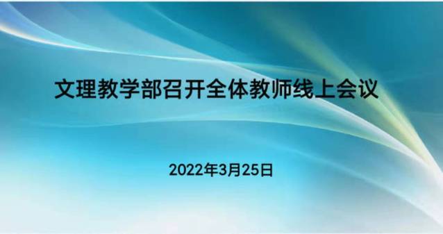 3月25日晚,文理教学部在群里发出召开全体教师线上会议的紧急通知,作为落实学校布置的疫情防控应急演练的一种校外模式,短短一刻钟内,教师们纷纷应约而至,相聚线上,会议由直属党支部书记秦禹权主持,分别就当前疫情防控中的重点工作和线上课程教学事宜进行了部署和传达。
