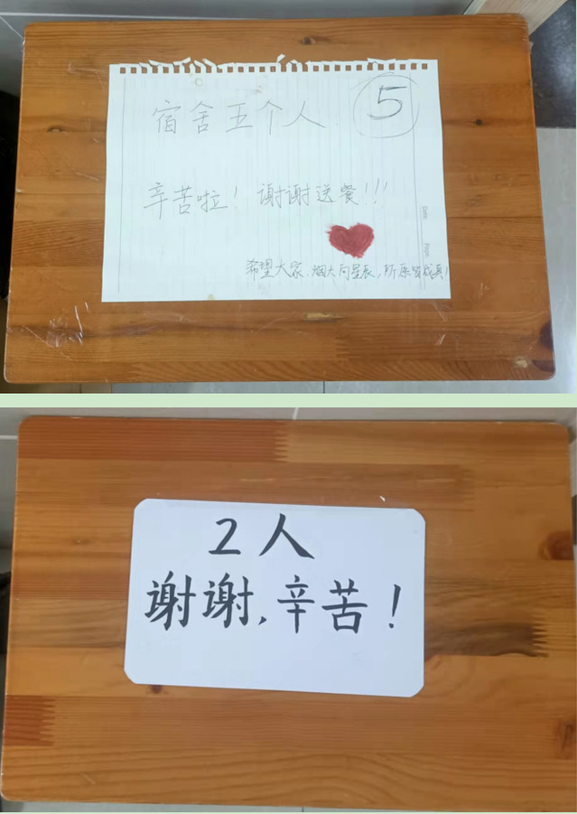 是她们,是许多的她们,确保了9号楼同学各方面的需求得以满足,让同学们在准封闭管理期间,愉悦地学习与生活,用温情构筑起一道健康屏障……也正是她们,让我们明白,疫情可以让人产生物理上的距离,却不会产生心理上的距离。也是她们让我们看到,上健医人的坚守与信心。我们相信,寒风过尽,定会春暖花开!(南苑综合办)