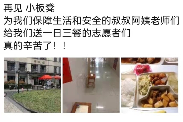 南苑9号楼作为学校第一幢实行“2+12”管理的楼宇,在过去的十四天中,师生团结抗疫,用浓浓的温情构筑起一道守护全校师生的健康屏障,充满温情的健康屏障离不开学校疫情防控领导小组的坚强领导,离不开南苑综合办的精细化管理,更离不开9号楼全体师生守望相助,用奉献和感恩激发出了健康人在逆境中的“抗疫正能量”。