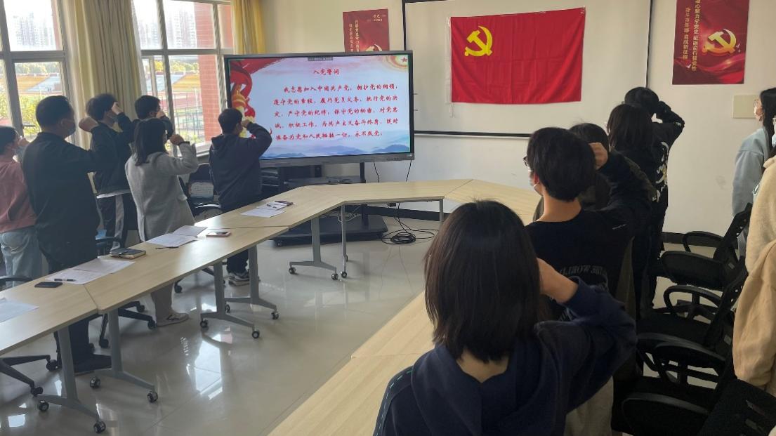 在大会上,临时党支部组织委员何雅敏宣读校党委《关于成立护管学院党总支临时党支部的请示》的批复,何雅敏、陈娅俊、郭利军三名同志任临时党支部委员会委员,陈娅俊同志任临时党支部书记。临时党支部师生党员共同重温入党誓词,共同学习了中共上海市委组织部下发的《在大战大考中彰显特殊责任、特殊担当——致全市共产党员的一封信》。胡雪东、张青青代表教工党员进行了交流发言,唐致椿、齐雪代表学生党员进行了表态,他们纷纷表示将始终牢记党员的职责使命,弘扬伟大抗疫精神,坚守共产党人的情怀,扎实做好本职工作,做到一环扣一环,环环相扣,一事跟一事,事事解决,将每一个部署决策落实生效。