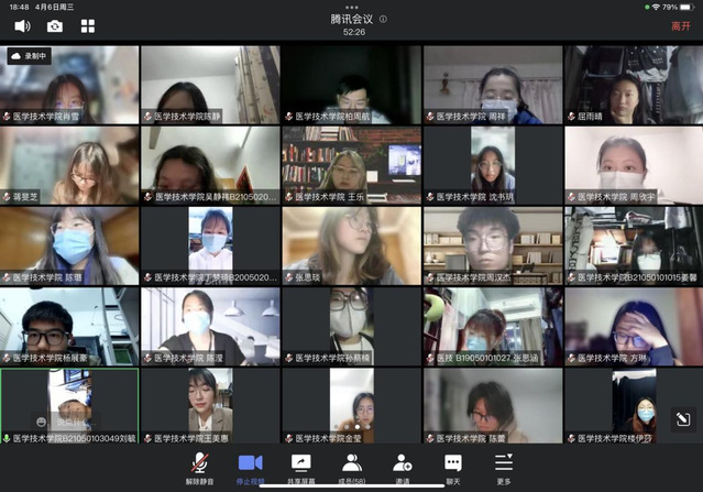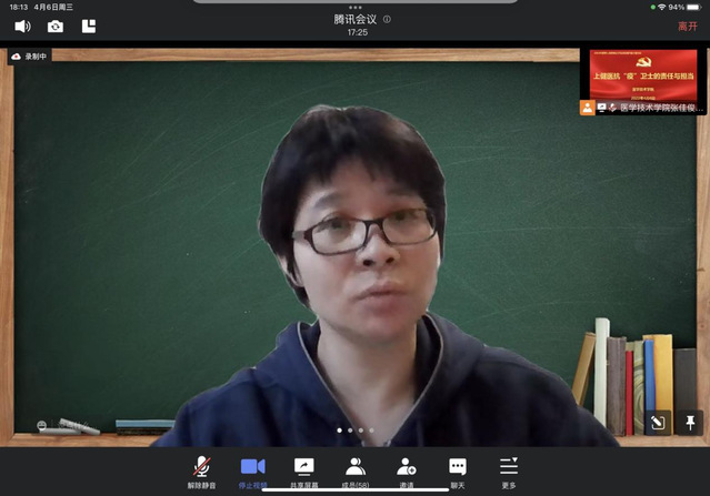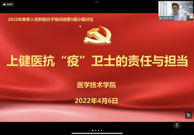 2022年4月6日,为了更加有效地落实学校疫情防疫工作,根据学校党委组织部的安排,围绕抗疫卫士的责任与担当,医学技术学院2022年春季入党积极分子培训班第五小组就此召开了线上交流会。由疫情防控期间新南苑首任综合办主任、校纪委副书记、人事处处长郑学文担任嘉宾,医学技术学院党总支委员、组织员何双泉主持会议。沈思佳、陈滢两位党员及54名学员在线参与。
