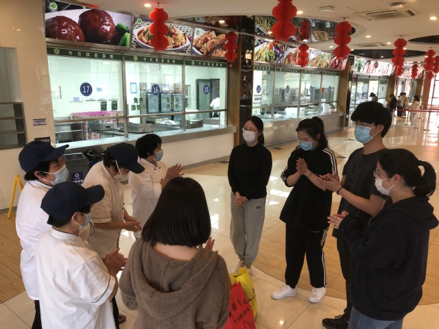 “阿姨,我们应该谢谢你们,你们为了让我们吃得饱、吃得好、吃得有营养,早起晚睡,付出了很多,你们辛苦了!”“您为我煮饭汤,我为您换衣裳”学生纷纷回应道。大家相互鼓励、感谢,说了好久,这份爱心传递和守望相助刻在了彼此心中。