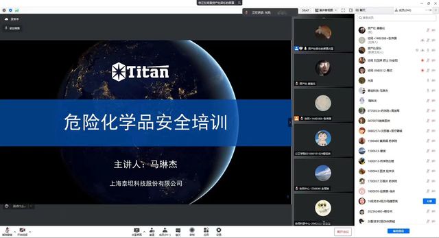 4月14日下午,第一场实验室安全线上培训讲座开始,资产与设备管理处邀请了上海泰坦科技股份有限公司副总裁马琳杰先生给大家做了关于“危化品安全”的专题培训,全校各二级学院(部、中心)分管实验室安全的负责人、实验室中心负责人、实验员、教师和学生共计260余人参加了培训。