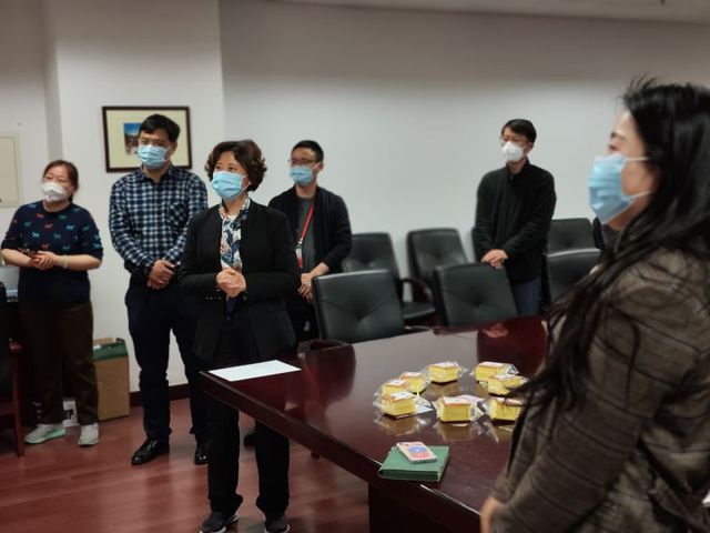 唐红梅对高源在疫情防控期间的努力工作给予充分肯定,对她忘我工作,舍小家顾大家,守护校园健康平安所付出的努力表示高度赞扬,并代表学校领导向她送上生日祝福。