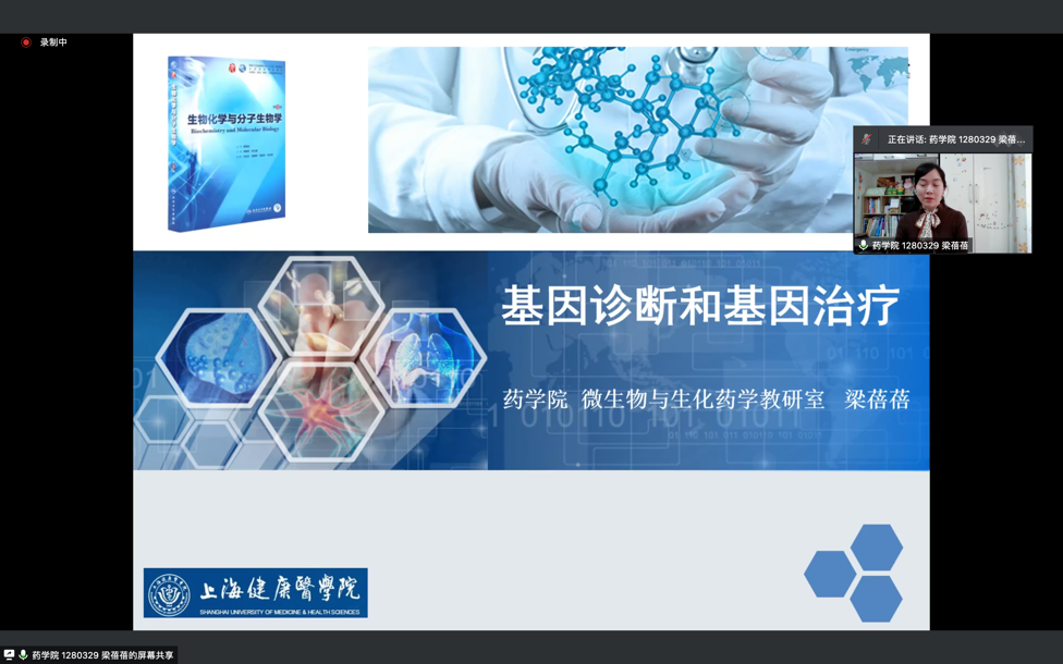 培训会上,药学院微生物与生化药学教研室梁蓓蓓老师以《生物化学与分子生物学》课程的性质、教学条件、教学内容设计、教学组织与实施和教学效果与展望等为基本模块,围绕基因诊断特征、基因诊断步骤、基因诊断常用技术及基因治疗的基本过程等,与药学院的同学们开展了一次线上示范课。同时,利用示范课的机会,向与会教师科普了核酸与抗原检测的原理知识。随后,周进祝教授对示范课的课程设计、学生为中心教学模式、教学重点难点、能力为重完成教学目标以及课程思政等方面给予了点评与指导。(教务处、教师教学发展中心、评建办)