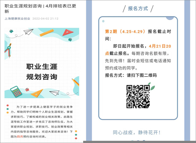 3月下旬开始,启路生涯导航工作室组建了11位经验丰富的教师团队,面向全校学生每周开通“一对一”个体职业咨询服务,针对职业规划、考研留学、职业定位、求职技巧、笔试面试、专业困惑等六大领域提供个性化的指导意见。目前,咨询师通过腾讯会议已完成32位学生的云咨询,切实解决了学生求职期间遇到的困扰,帮助学生做好个人职业生涯规划。