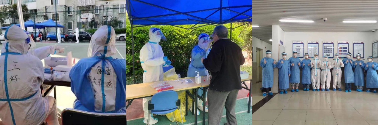 在校外,班级的同学们也积极参与社区疫情防控工作。20级助产班的王好同学在主题班会之后,就在所居住的社区做起了志愿者,投入到了社区的疫情防控中,她的任务是引导居民有序参加核酸检测、介绍疫情防护知识,她与父母一同参加志愿者活动,全家总动员的事迹得到了静安区官媒“文明静安”的全文报道;徐歆蕾同学通过学习如何规范穿脱防护服、如何采样鼻咽拭子的视频培训后,跟随长海社区医院一同前往星云苑社区进行核酸采样。穿上防护服,大家看不清彼此的脸庞,但她们擎着的微光,温暖了大家。