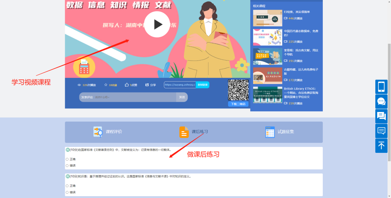 第二步:学习视频课程,进行课后练习。试题80%的题量与视频课程内容直接相关,20%为综合性试题,考察综合应用能力。