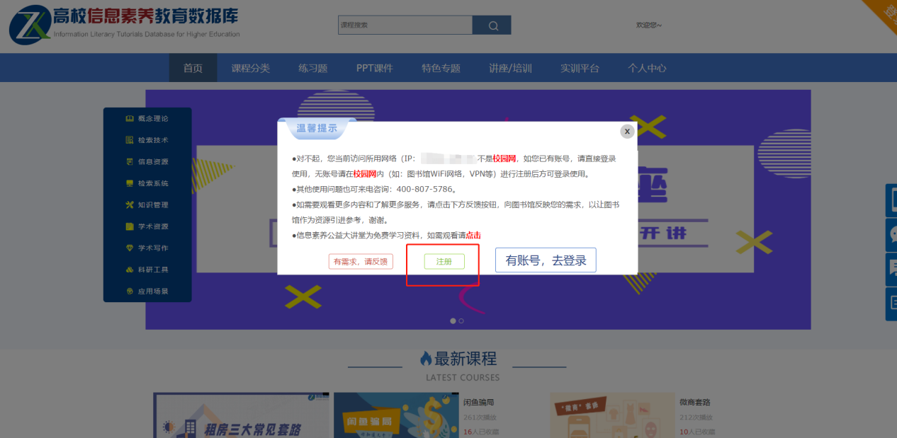 各高校已开通不限IP注册权限,即使在校外亦可进行账号注册。