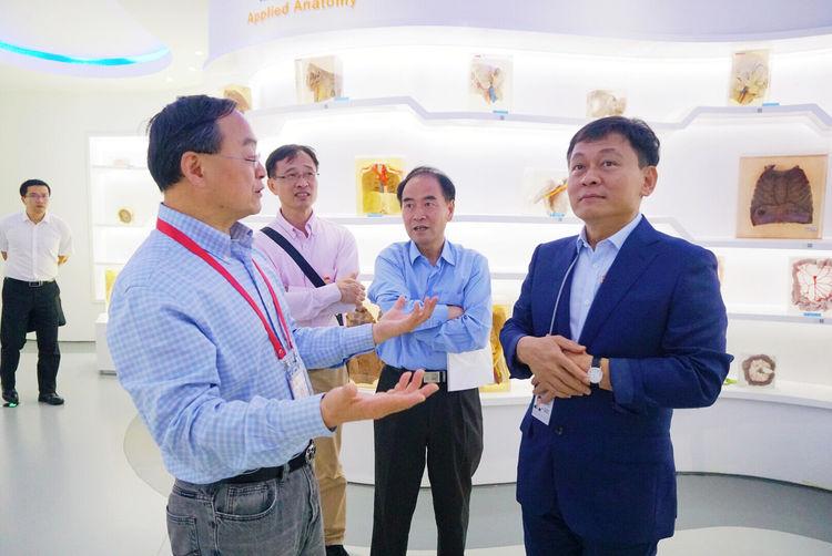 林一民书记一行在黄钢校长的陪同下参观考察了学校基础医学互动学习与实训中心