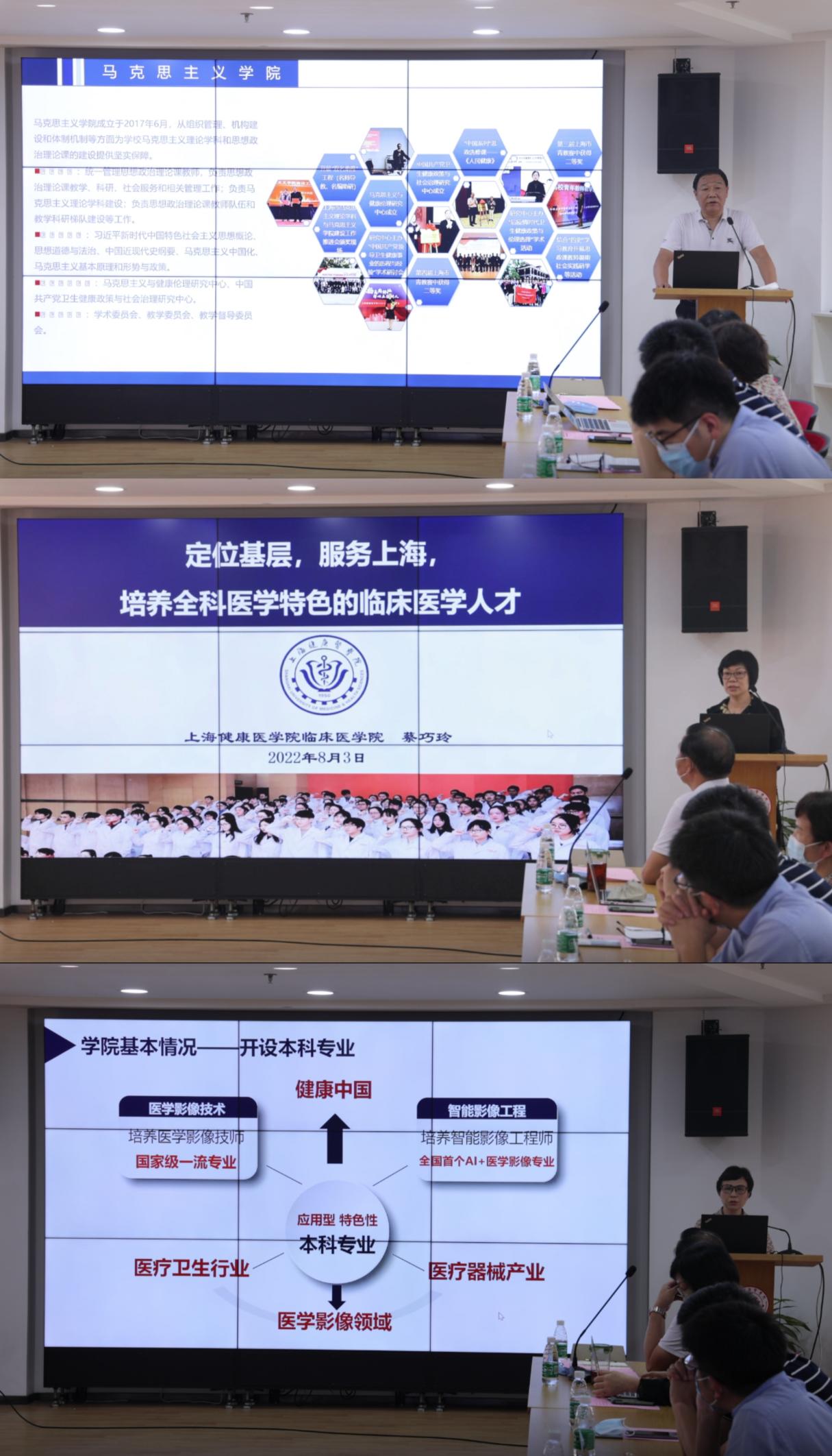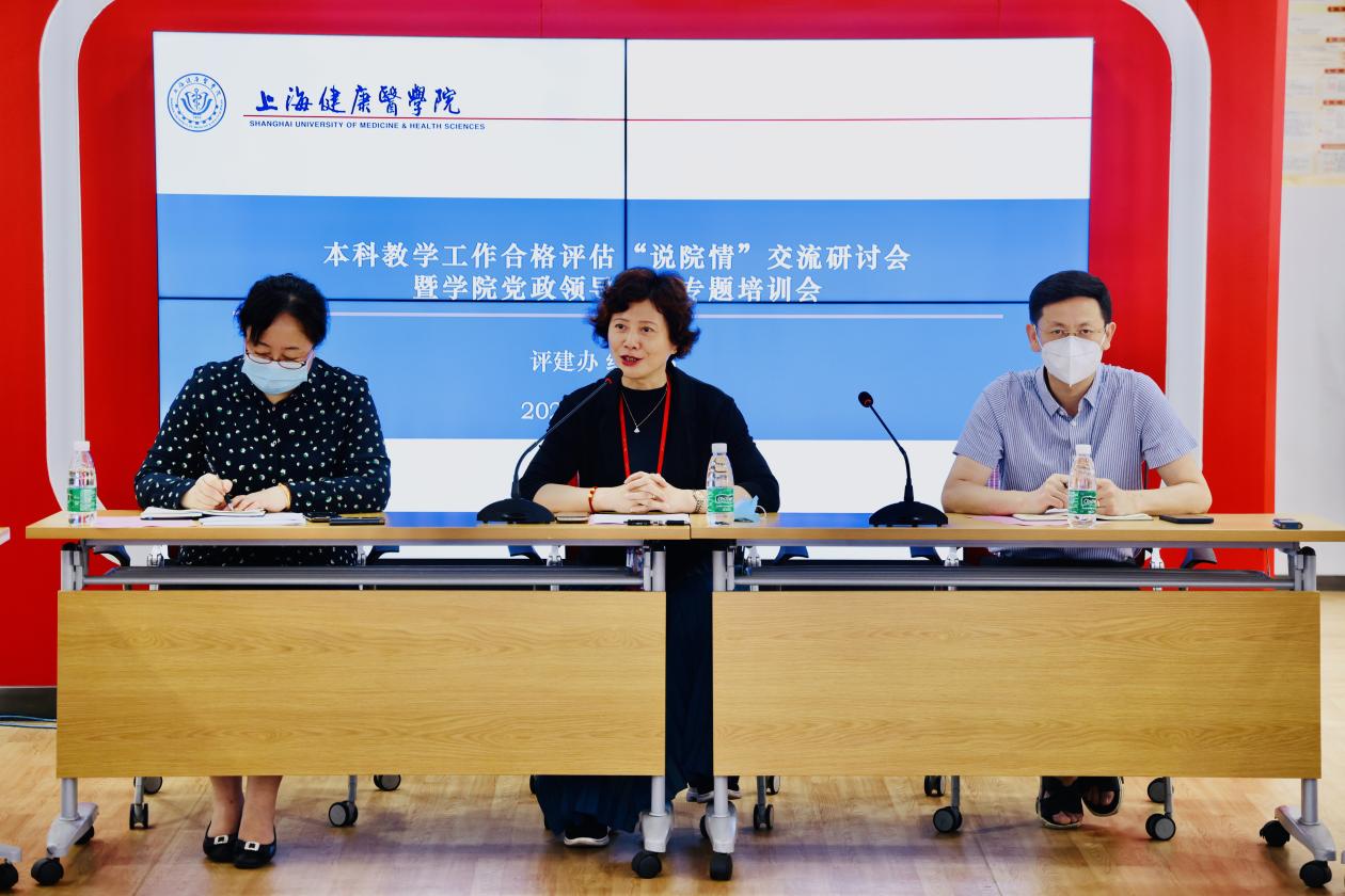 在“院长说院情”环节,马克思主义学院院长孙玉良、临床医学院院长蔡巧玲、医学影像学院院长徐小萍等围绕评建工作要求,从学院基本情况、应用型人才培养的思路与举措、人才培养的成效与特色及下一步发展规划等几个方面进行了汇报交流。