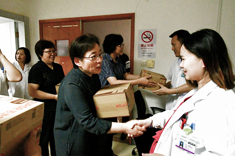 7月31日,又是一个高温天。上海健康医学院党委书记郑沈芳、党委副书记于莹,在区卫计委党委书记郑艳辉的陪同下,冒着酷暑赶到嘉定,慰问附属医院奋战在一线的医务职工们。