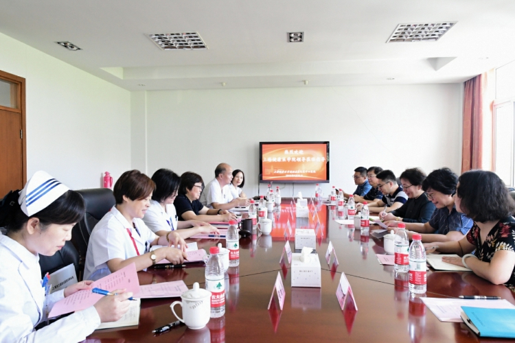 慰问结束后,上海健康医学院、区卫计委领导来到会议室,与医院班子成员座谈交流。会上,黄旭元院长首先介绍了医院2018上半年医教研各项工作的开展情况,并将下半年的重点任务——迎接三级医院评审的各项准备工作向与会领导详实汇报。学校、卫计委共同就如何助力嘉定区中心医院上等达标进行了深入的探讨和交流。 郑沈芳书记指出,嘉中心正处于最好的历史发展时期。如何把握住这个关键时期,需要各方共同努力,众志成城,攻坚克难,为把嘉中心建成体制机制符合直属附属医院,不断满足百姓医疗需求的三级医院而不懈奋斗。