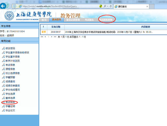 (1)网址1:http://jwmis2.sumhs.edu.cn/