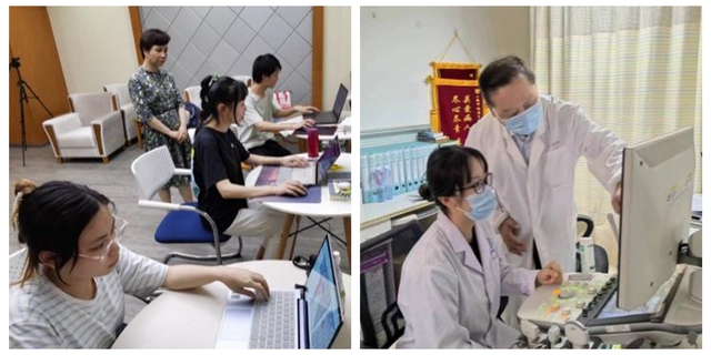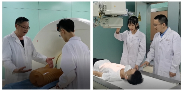 自接到大赛通知以来,学院领导高度重视此项比赛,第一时间成立参赛教师指导小组,同时选拔优秀学生参赛,并组织统一集训。七、八月份备赛期间,徐小萍院长、周进祝教授多次督促比赛准备工作,时时关心备战师生,鼓励大家保持进取心态,精益求精、劳逸结合。同时,克服疫情防控因素带来的各种不便,积极创造条件为参赛选手保驾护航。此次大赛必选项目DRMRI采用机型比较小众,上海所有医院都没有同类机型,自选项目超声设备全上海也只有两台。面对特殊困难,参赛学生在紧张复习理论知识的同时,在学院多方协调下辗转多地,除前往仁济医院、上海市第六人民医院、上海市控江医院等单位练习外,彭文献老师还带着选手赶赴苏州大学附属第一医院、昆山市巴城镇社区卫生服务中心等地熟悉比赛机型。集训后期,特邀护管学院蔡妤珂老师前来学院为参赛师生进行大赛礼仪的专项培训,确保参赛师生展现出上海健康医学院优良的精神面貌。