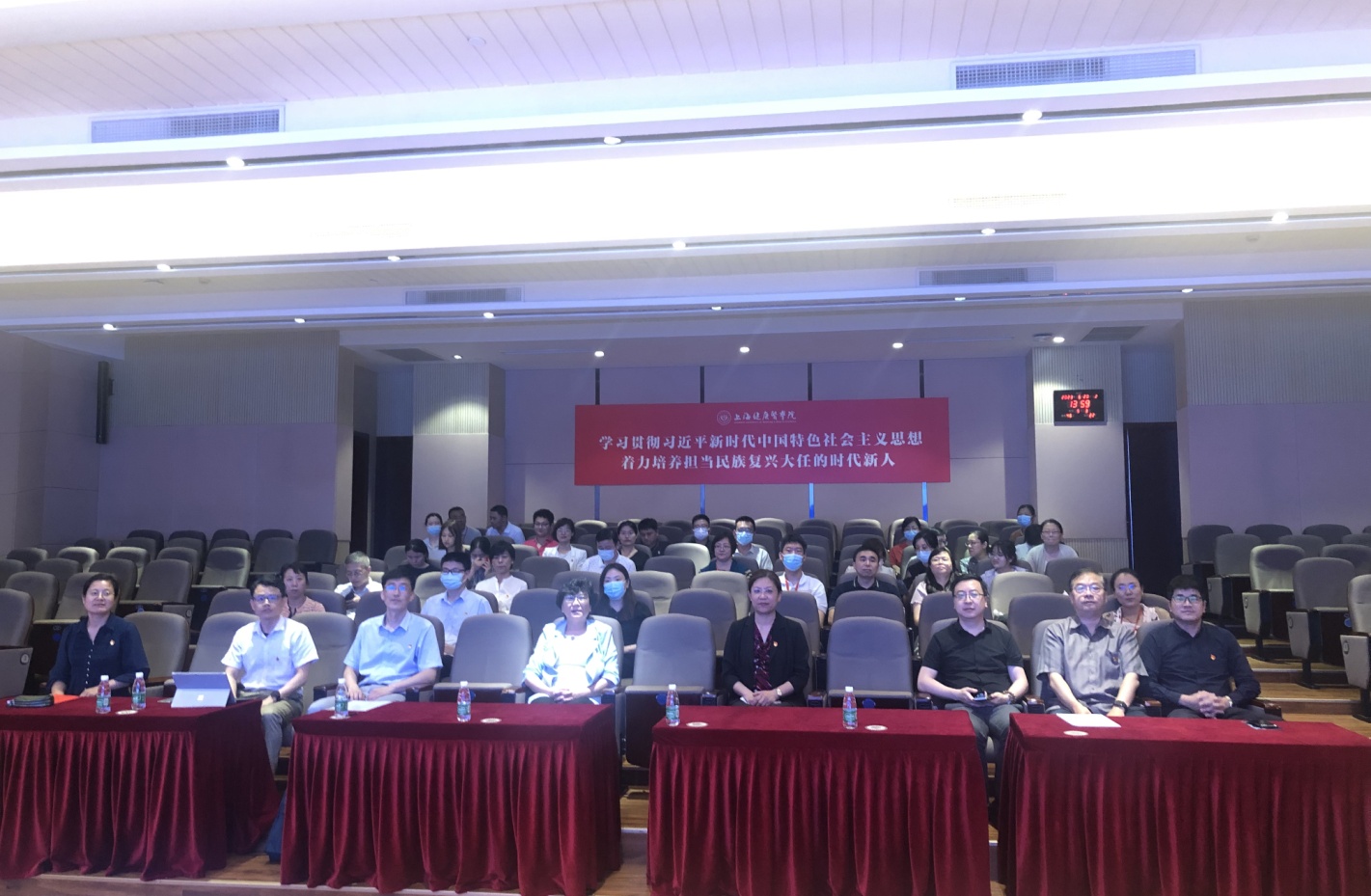 6月20日下午,校党委副书记于莹以“心怀‘国之大者’,做新时代‘大先生’”为主题在北苑1号楼200人报告厅给医疗器械学院、康复学院、行政第一联合直属党支部上了一堂精心准备的专题党课,康复学院党总支书记王红主持,医疗器械学院中心组成员、康复学院中心组成员和行政第一联合直属党支部全体党员参加此次学习。